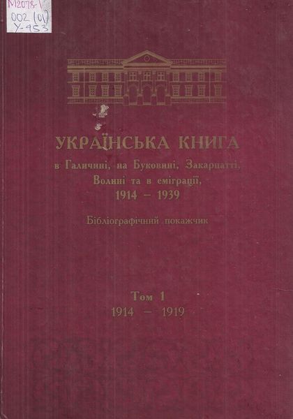 Українська книга в Галичині, на Буковині, Закарпатті, Волині та еміграції, 1914-1939 : бібліогр. покажчик. Т.1 : 1914-1919. – Львів, 2010. – 472 с.