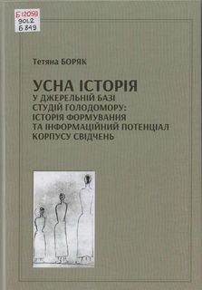 - Боряк Т. Усна історія у джерельній базі студій Голодомору: історія формування та інформаційний потенціал корпусу свідчення: монографія / Т. Боряк ; Запорізький національний університет, Вільнюський університет. – Київ: Юрка Любченка, 2024. – 630 с. Шифр:Б12059/901.2/Б849