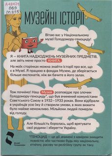 - Музейні історії: [путівник Національним музеєм Голодомору-геноциду] / Національний музей Голодомору-геноциду, Освітній відділ ; комікси намалювала Є. Чернухіна ; дизайнерка В. Односум. – Київ: Національний музей Голодомору‑геноциду, [2025]. – 1 арк. склад. вчетверо с.: іл. Шифр:А48424/069/М895, №1180743–ДБ