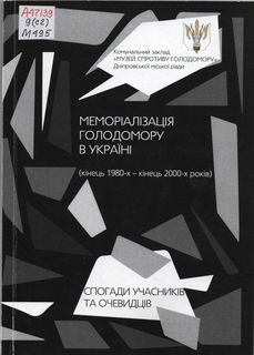 - Меморіалізація Голодомору в Україні (кінець 1980-х – кінець 2000-х років) : спогади учасників та очевидців / Дніпровська міська рада, Музей спротиву Голодомору ; упоряд. В. Рибалка. – Дніпро: Герда, 2023. – 121 с.: фот. Шифр:А47139/9(c2)/М495, №1174955–КУ