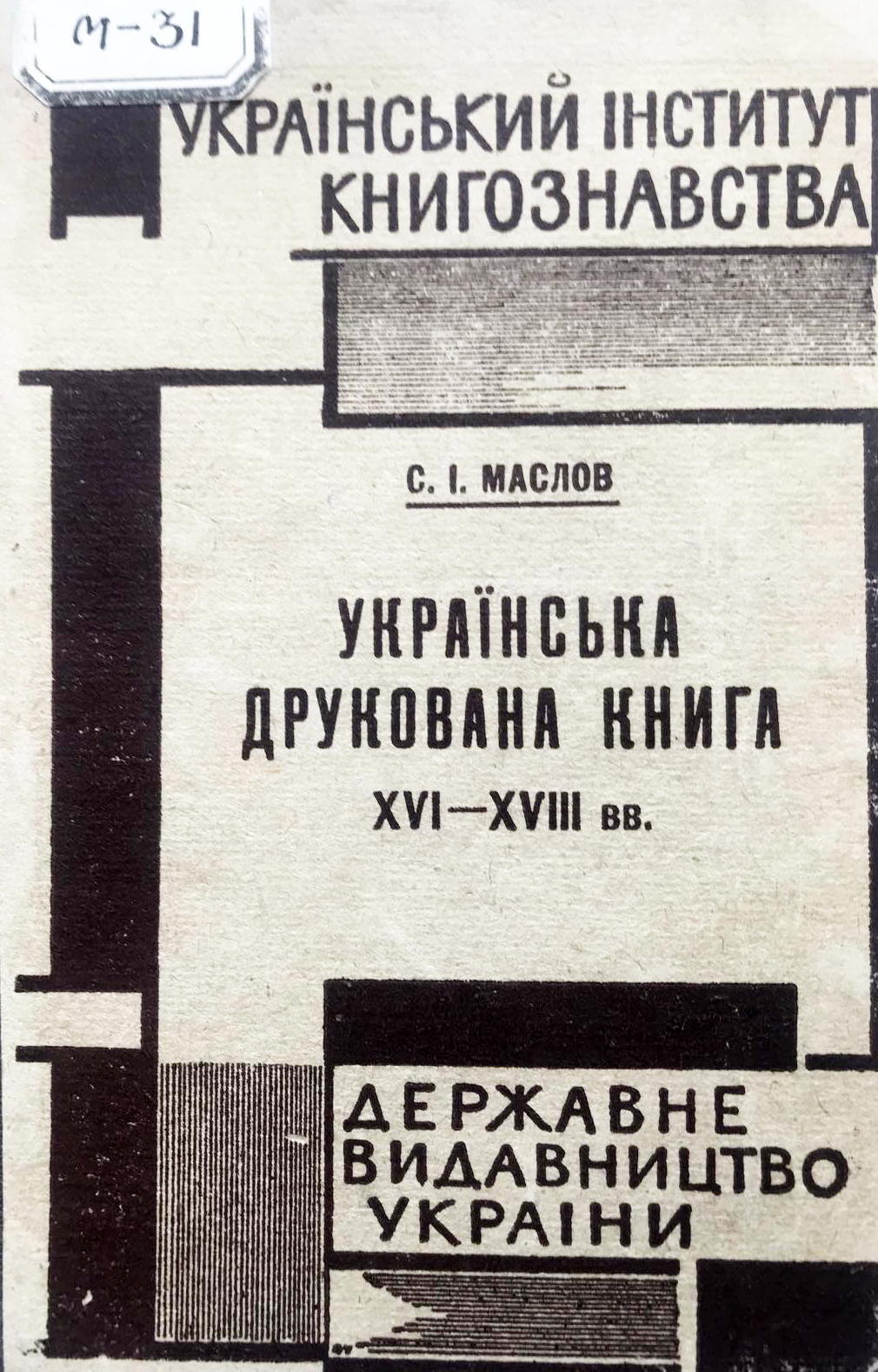2. Сергій Маслов. 1902-1927 / Український науковий інститут книгознавства ; обкл., заст. та кінцівки роботи А. Середи. – Київ, 1927. – (Українські бібліологи).