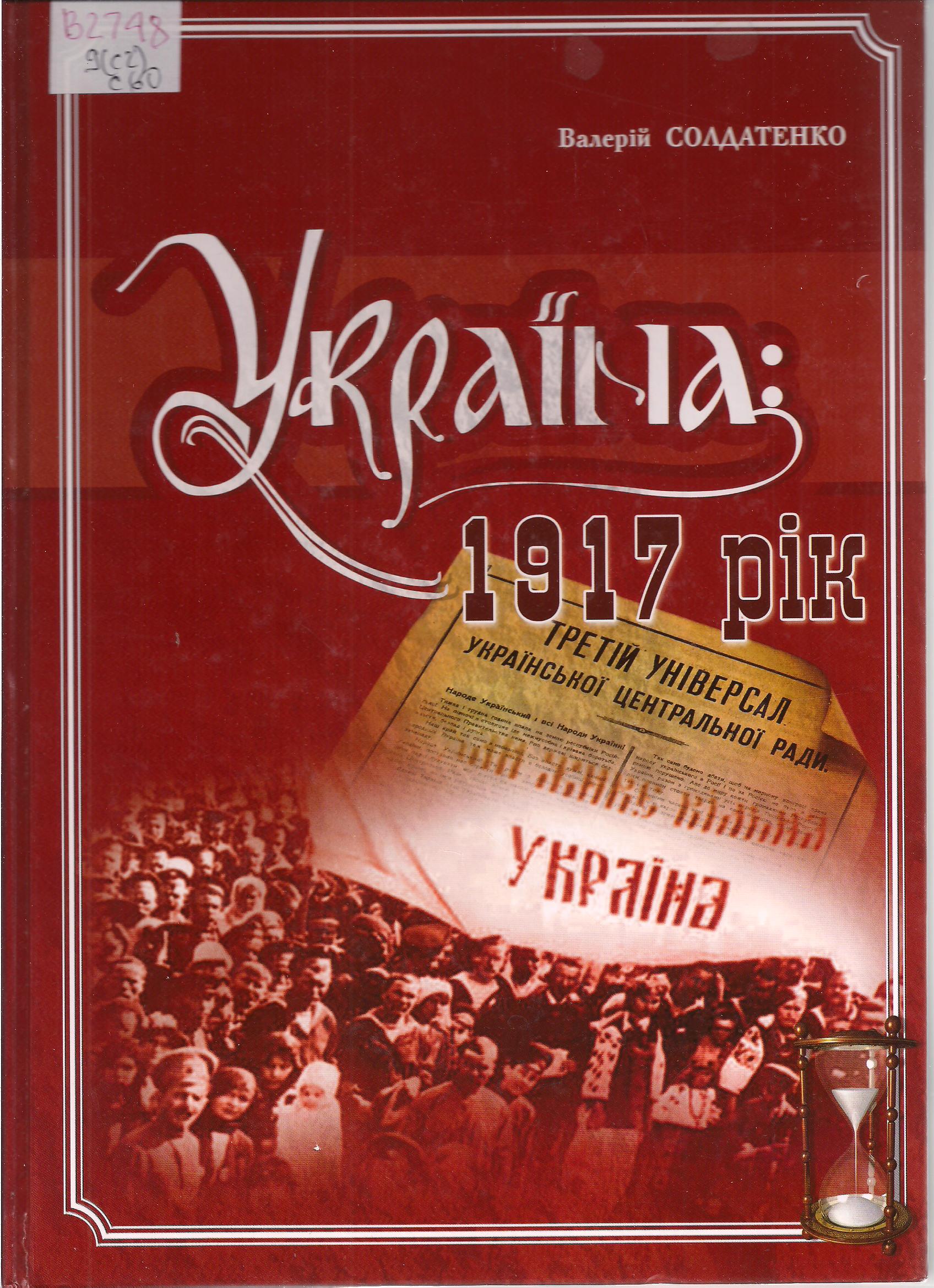 А6064 / 9(с2) С60 Солдатенко В. Ф. Українська революція, 1917-1920 рр. : нарис / В. Ф. Солдатенко. – Київ : [б. в.], 1999. – 976 с. У книзі відтворено панорамну картину історії Української національно-демократичної революції 1917-1920 років. Розроблено критерії періодизації досліджуваного процесу, з’ясовано причини, характер і мету боротьби, сутність і еволюцію розвитку концепції, схарактеризовано головні події буремної доби. Розкрито історичне значення та уроки Української революції. |