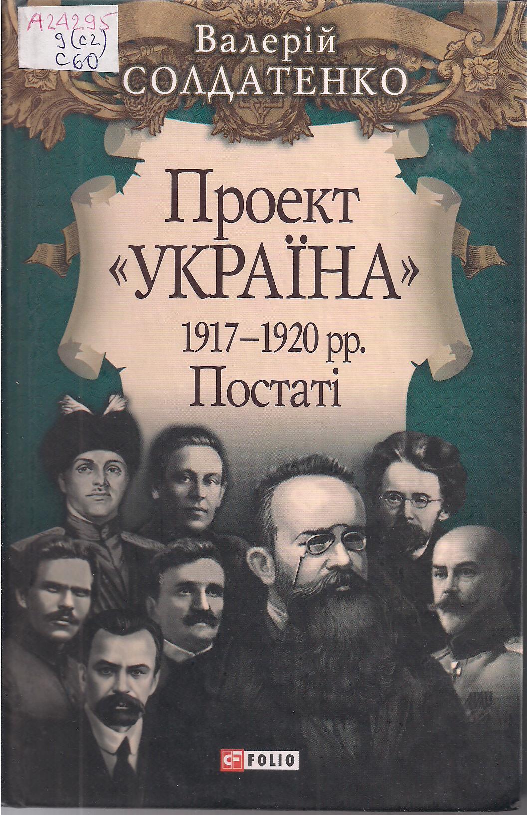 А24295 / 9(с2) С60 Солдатенко В. Проект "Україна" 1917-1920 рр. Постаті / В. Солдатенко. – Харків : Фоліо, 2011. – 512 с. – С. 332-344. У цій книзі подані короткі матеріали про тих, хто стояв біля витоків відродження нації, розробляв платформу Української революції, керував її втіленням в життя, очолював політично-координаційний центр національної державності, - М.Грушевського, В.Винниченка, М.Міхновського, Д.Дорошенка, П.Христюка, С.Голубовича, М.Порша та багатьох інших. Всі вони залишили достатньо рельєфний слід у житті нації. Їх прізвища фігурували в сотнях і тисячах важливих, іноді – справді доленосних документів, а від позицій, вчинків і дій багато в чому залежав вектор розвитку великого європейського народу на одному з переламних рубежів вітчизняної історії. |