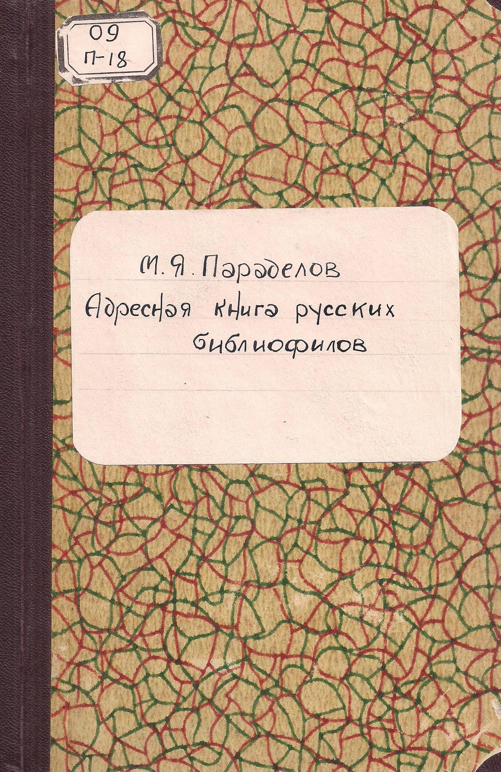 Параделов, М. Я. Адресная книга русских библиофилов и собирателей гравюр, литографий, лубков и прочих произведений печати / М. Я. Параделов. – Москва : Издание антикварного книжного отдела при магазине древностей и редкостей М. Я. Параделова, 1904. – 180 с.