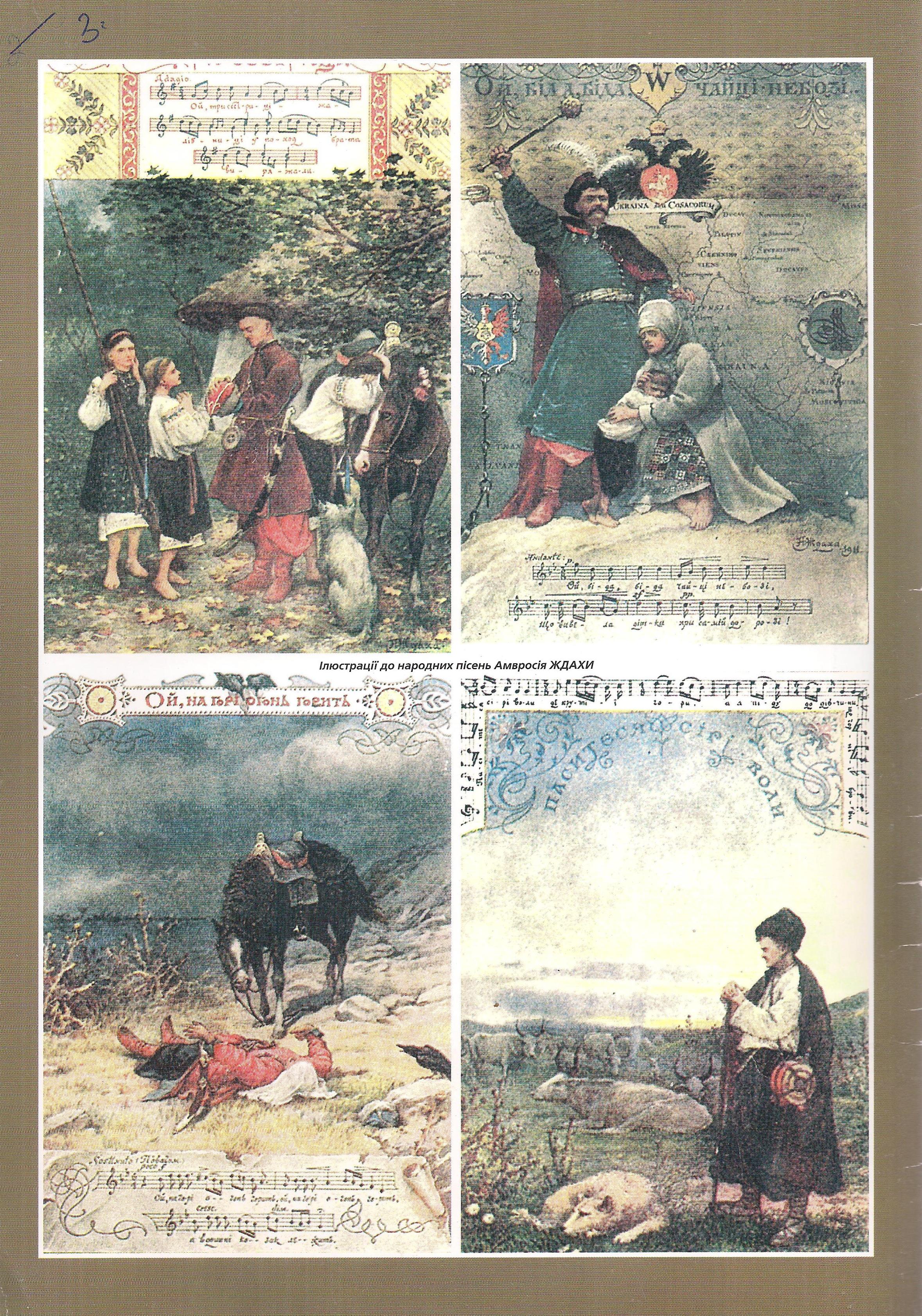 Амвросій Андрійович Ждаха (Смаглій) (1855-1927) – український графік, ілюстратор, майстер акварельної мініатюри та бібліофіл. Відомий своїми яскравими і проникливими ілюстраціями до творів української літератури, зокрема до «Кобзаря» та «Чорної ради», а також до народних пісень. Його роботи в стилі українського модерну відображали національне відродження та глибоку любов до української культури. Ждаха зробив вагомий внесок у популяризацію українського мистецтва і збереження національної ідентичності через образотворче мистецтво.