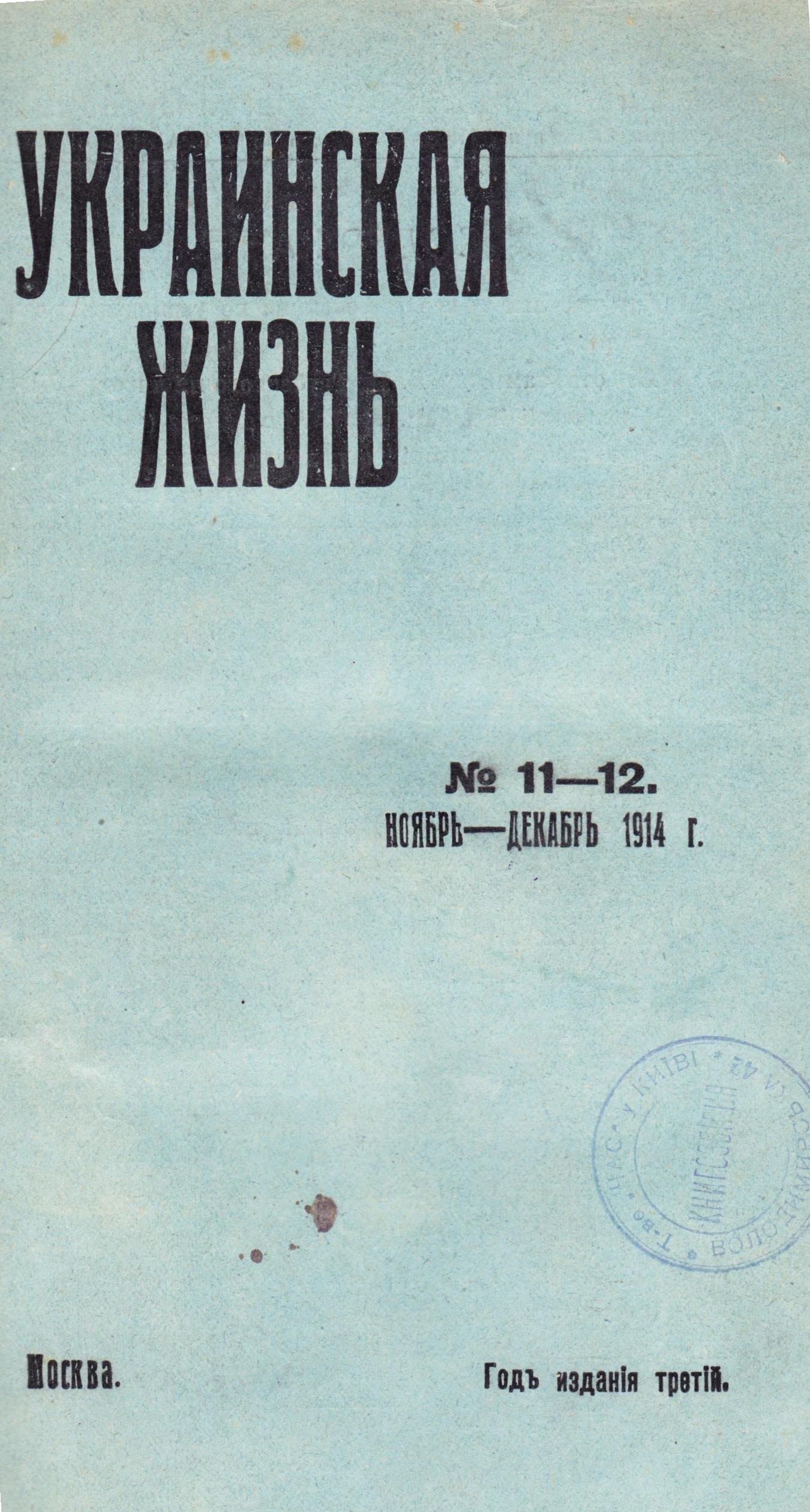 Михальчук, К. П. К ответам кн. Е. Н. Трубецкого на анкету «Украинской жизни» / К. П. Михальчук // Украинская жизнь. – 1914. – № 11-12. – С. 18-31. – Відбиток печатки: «Т-во «ЧАС» у КИЇВІ. КНИГОЗБІРНЯ. Володимирська, 42».