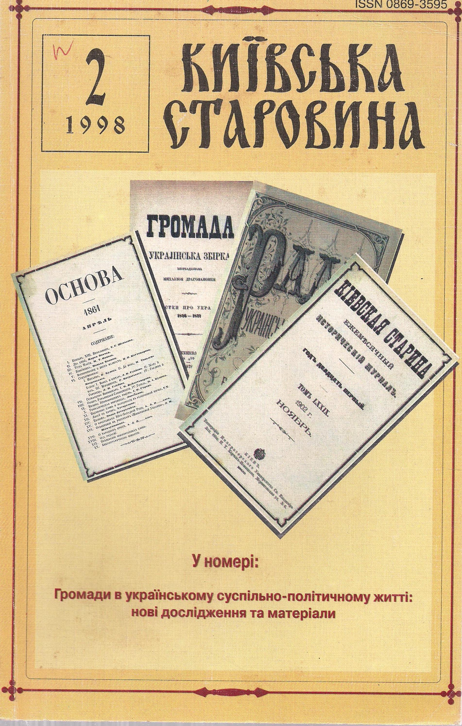Палієнко, М. Г. Київська Стара Громада у суспільному та науковому житті України (Друга половина ХІХ – початок ХХ ст.) / М. Г. Палієнко // Київська старовина. – 1998. – № 2. – С. 49-84.