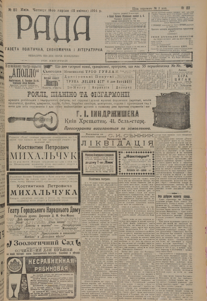 Грушевський, М. С. Раз добром налите серце / М. С. Грушевський // Рада. – 1914. – 10 квітня.