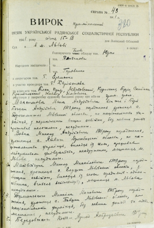 Перші арешти відбулися у вересні 1940 року. Заарештованих (59 осіб, серед яких — 22 жінки та 37 чоловіків), переважно студентів Львівського університету та учнів середніх шкіл, звинуватили в належності до ОУН та антидержавній діяльності. Серед заарештованих були члени Крайової екзекутиви ОУН на західноукраїнських землях, зокрема М. Матвійчук (керівник розвідувальної референтури), К. Арпад-Березовський (керівник пропагандивної референтури), Р. Горбаль (заступник керівника Львівського міського проводу ОУН), Р.-Д. Клячківський (керівник Юнацтва ОУН у Станіславській області та член Крайової екзекутиви ОУН) та інші.