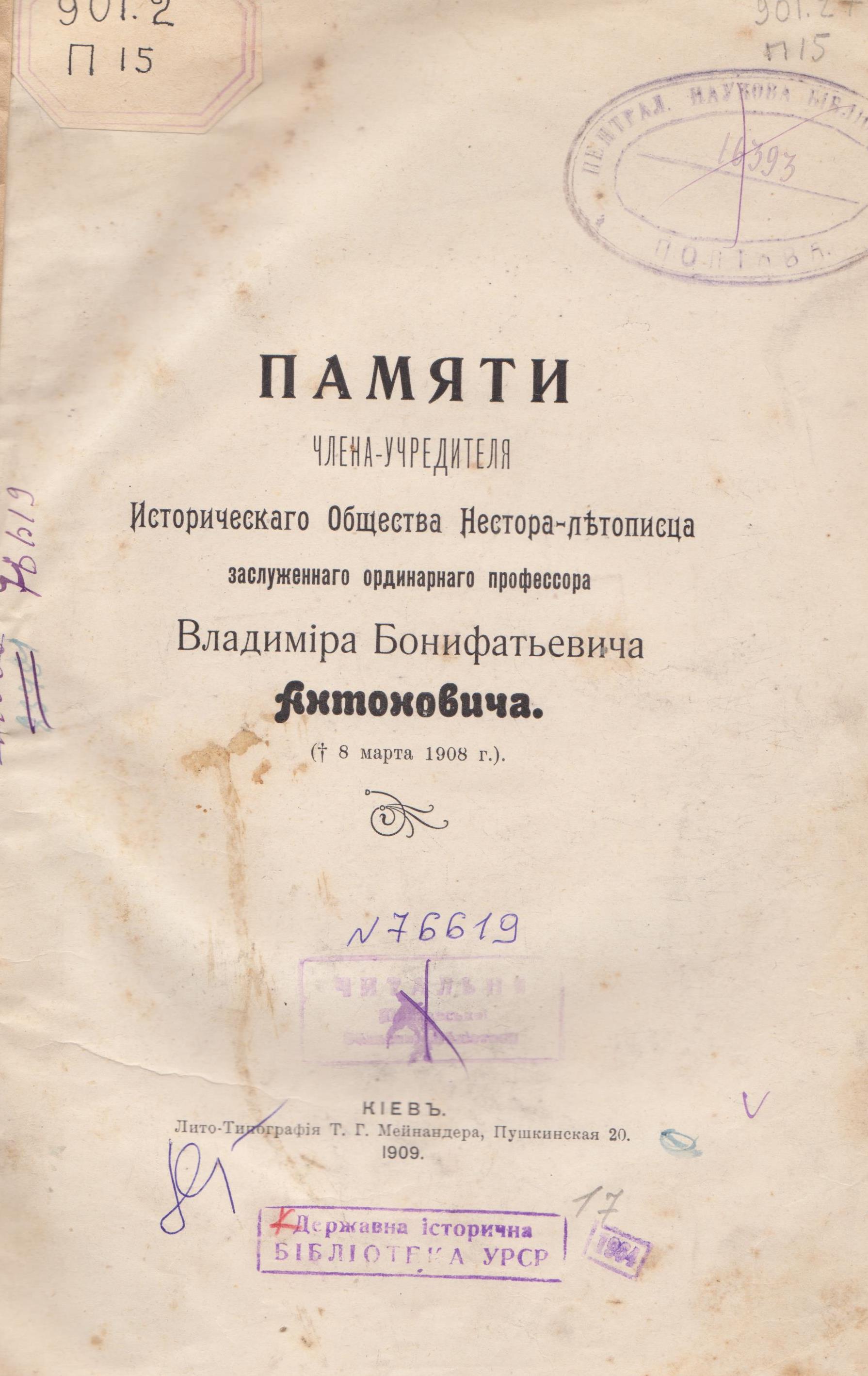 5. Щербина, В. Воспоминание о В. Б. Антоновиче / В. Щербина // Памяти члена-учредителя Исторического общества Нестора Летописца Владимира Бонифатьевича Антоновича. – Киев : Типо-Литогр. Т. Г. Мейнандера, 1909. – С. 36-41.