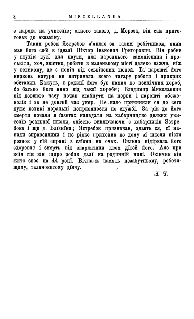 Л. Ч.* [Шульгин, Яків]. Володимир Ястребов (Некрольоґ)) / Яків Шульгин // Записки Наукового товариства ім. Шевченка. – Кн. ІІІ. – Т. XXIX. – 1899. – Miscellanea. – С. 1-4.