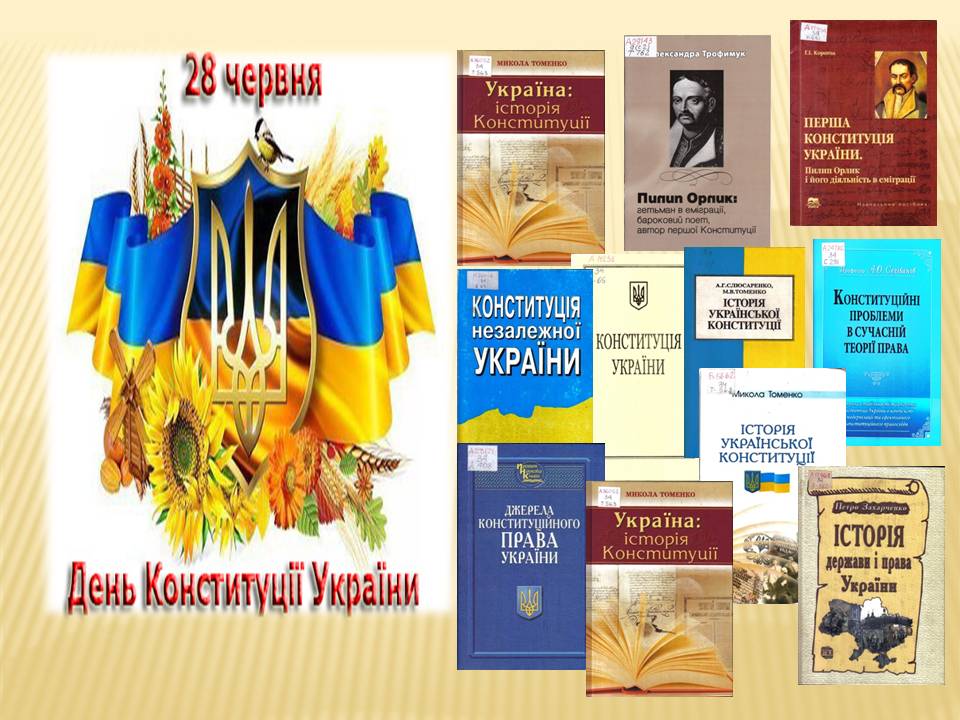 Слюсаренко А. Г. Історія української конституції [Текст] / А. Г. Слюсаренко, М. В. Томенко. - Київ : Т-во “Знання” України, 1993. - 191 с.
