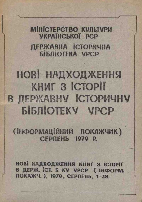 - щомісяця друкуються бюлетені «Нові надходження книг з історії в ДІБ УРСР»;