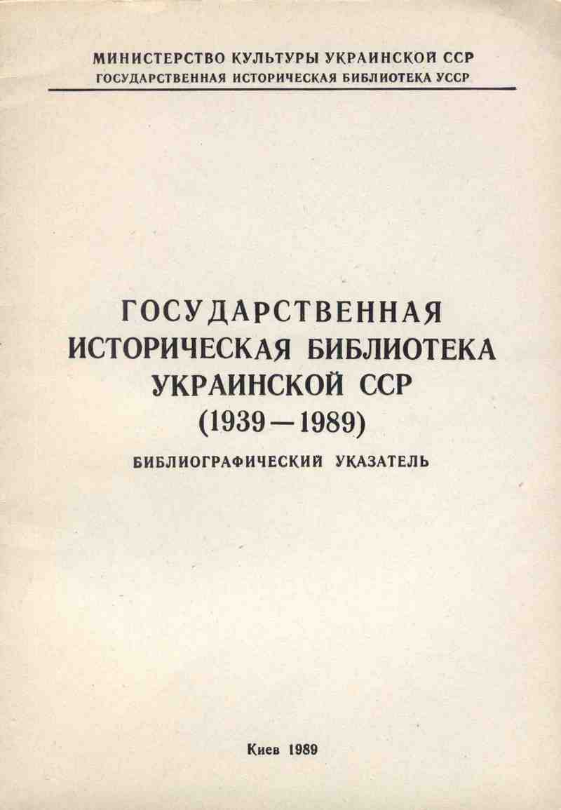 Государственная историческая библиотека Украинской ССР (1939-1989): библиогр. указатель / сост.: Т. М. Заморина, А. Н. Комская. К., 1989. 40 с.