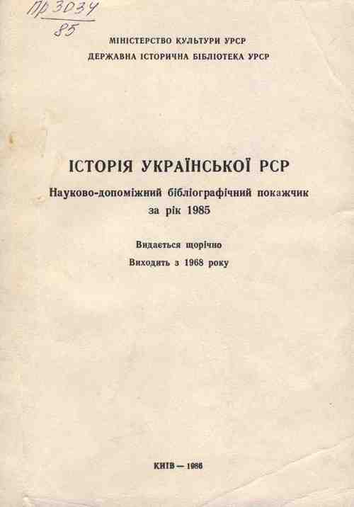 Побачив світ щорічний науково-допоміжний бібліографічний покажчик «Історія Української РСР» за 1985 рік.