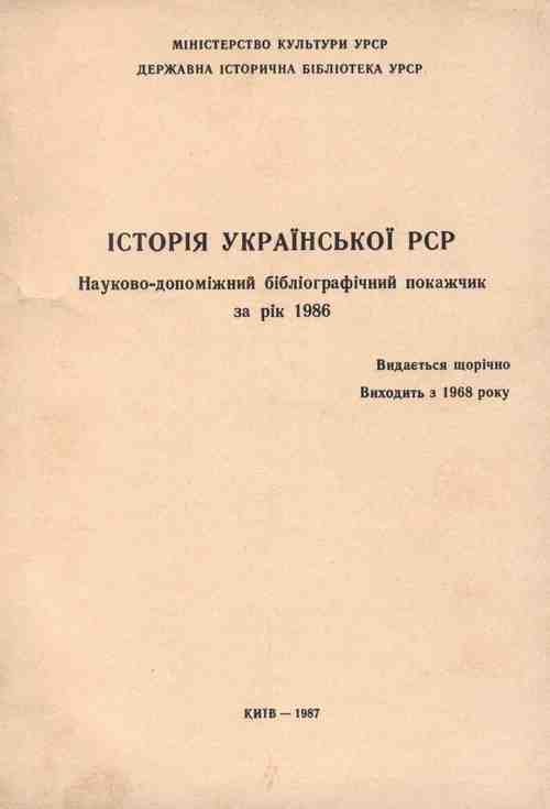 Вийшов у світ щорічний науково-допоміжний бібліографічний покажчик «Історія Української РСР» за 1986 рік.