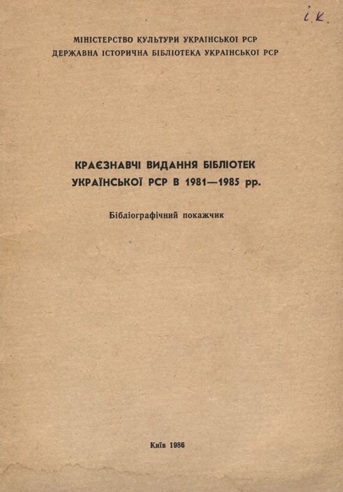 Краєзнавчі видання бібліотек Української РСР в 1981-1985 рр.: бібліогр. покажчик / склад. Л. П. Александрова. К., 1986. 37 с.