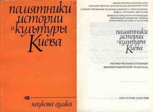 Памятники истории и культуры Киева: науч.-вспом. библиогр. указатель / сост.: Л. А.Балацкая. К.: Наук.думка, 1986. 159 с.