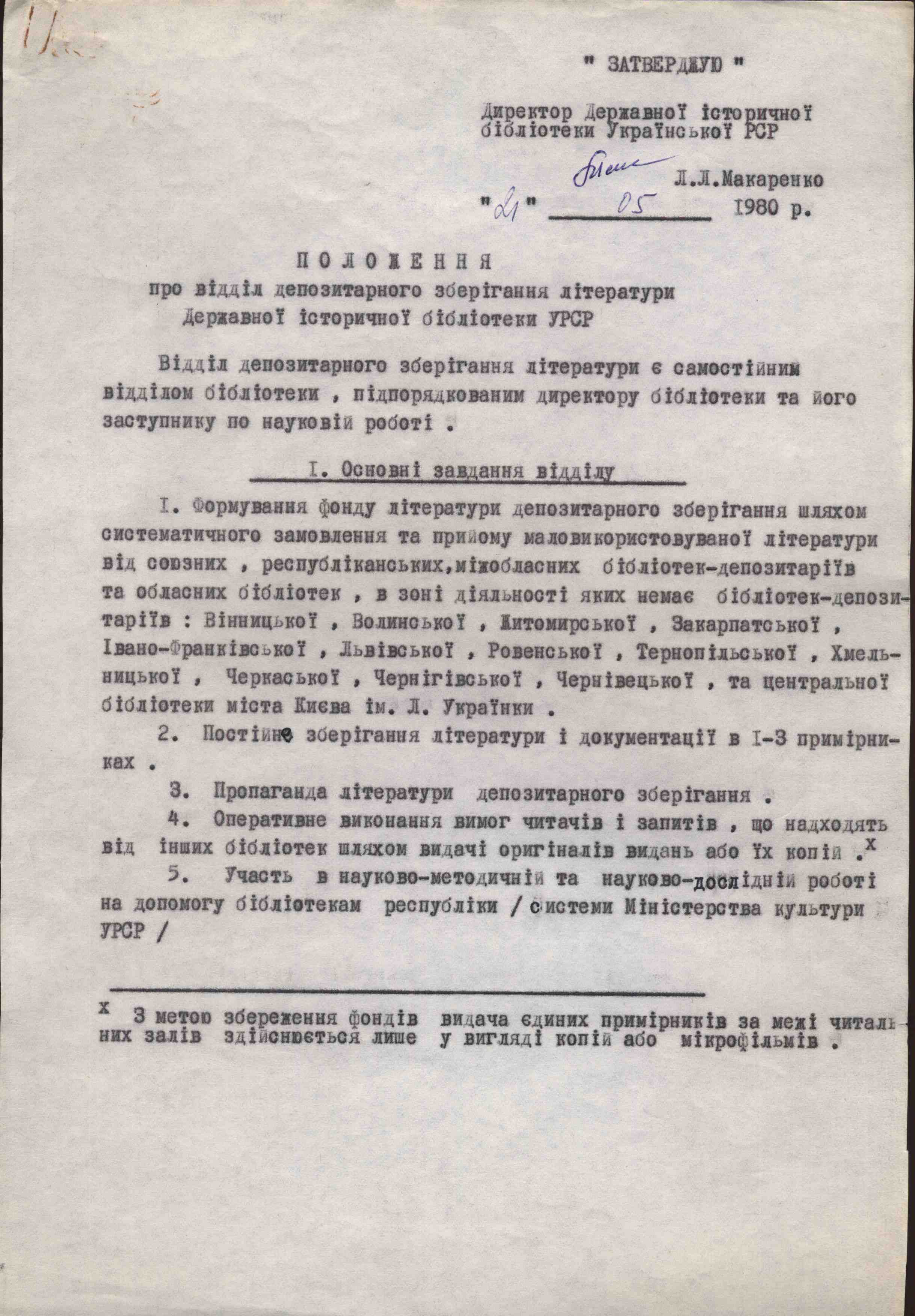 - сектор депозитарного зберігання літератури став відділом (1980 р.).
