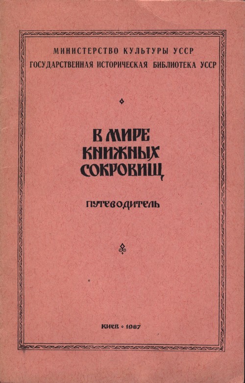 В мире книжных сокровищ: путеводитель / склад.: Г. Є. Варварич, Л. І. Горулько, О. М. Сілуянова. К., 1987. 38 с.;