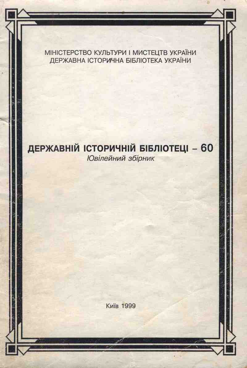- ювілейний збірник «Державній історичній бібліотеці України – 60», який містить Літопис книгозбірні, а також документи і публікації, що відображають основні події в житті Бібліотеки за 60 років;