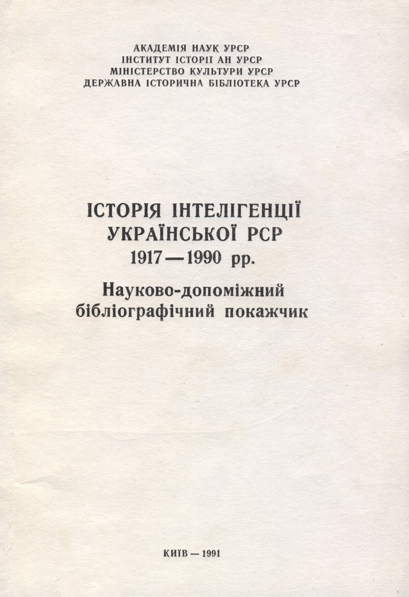 Історія інтелігенції Української РСР. 1917-1990 рр.: наук.-допом. бібліогр. покажчик / упоряд.: Л. Ю. Ступак, З. Х. Мусіна, за участю Л. П. Александрової. Київ, 1991. 532 с.