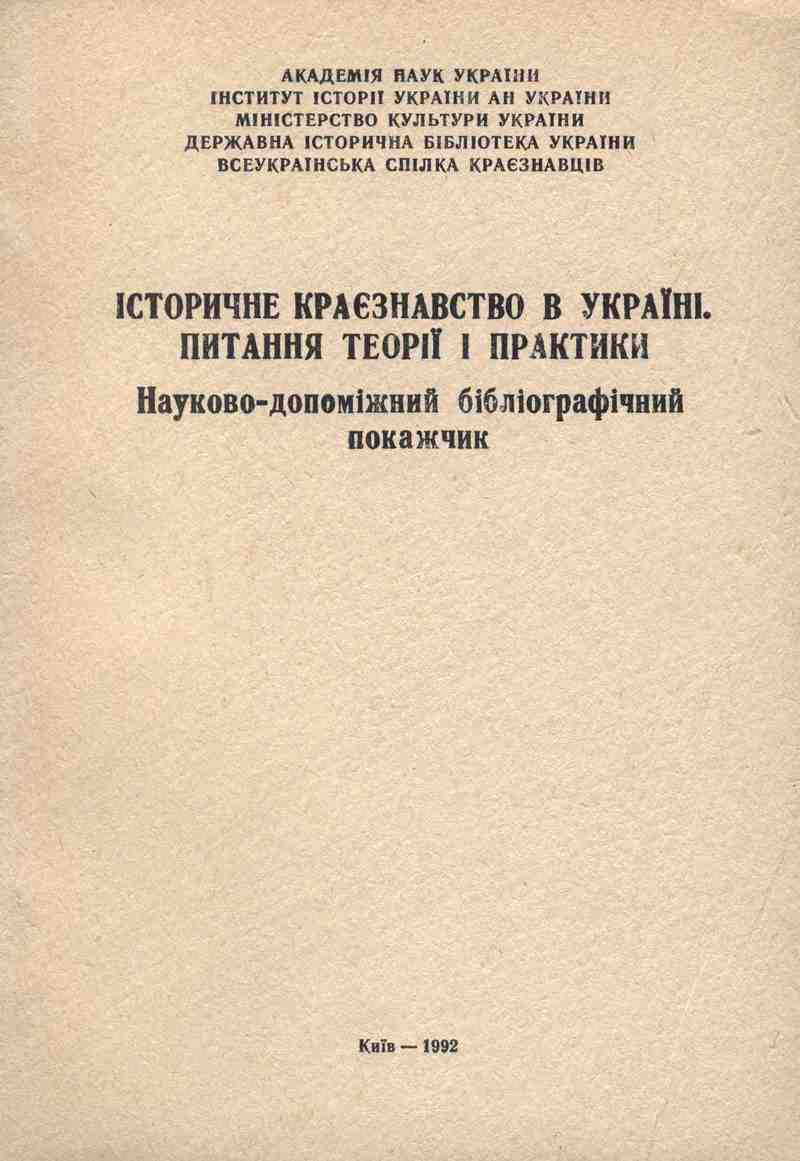 Історичне краєзнавство в Україні. Питання теорії і практики: наук.-допом. бібліогр. покажчик. / склад.: А. М. Комська та ін. Київ, 1992. 170 с.