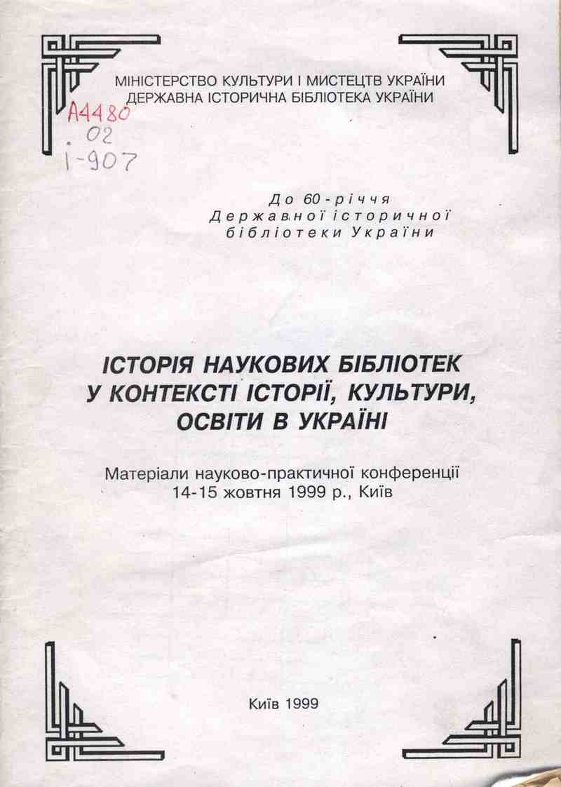 - ретроспективний бібліографічний покажчик «Державна історична бібліотека України (1939-1999)»;