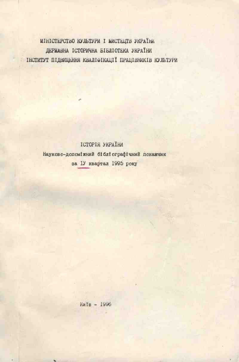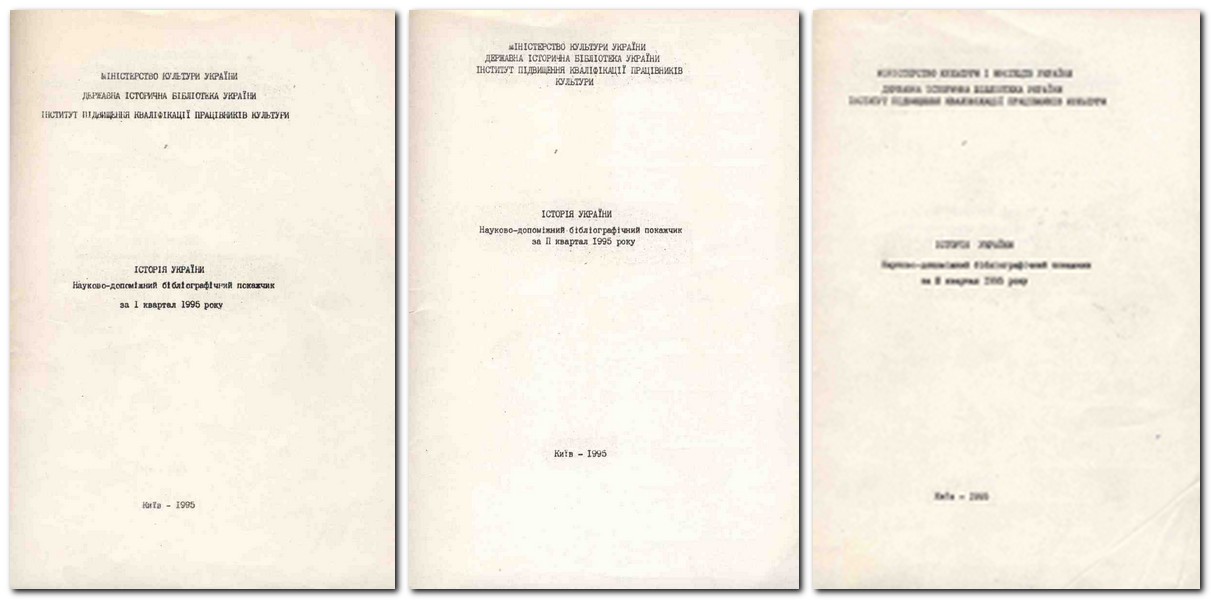 - випущено щоквартальний науково-допоміжний бібліографічний покажчик «Історія України за ІV кв. 1995 року»,