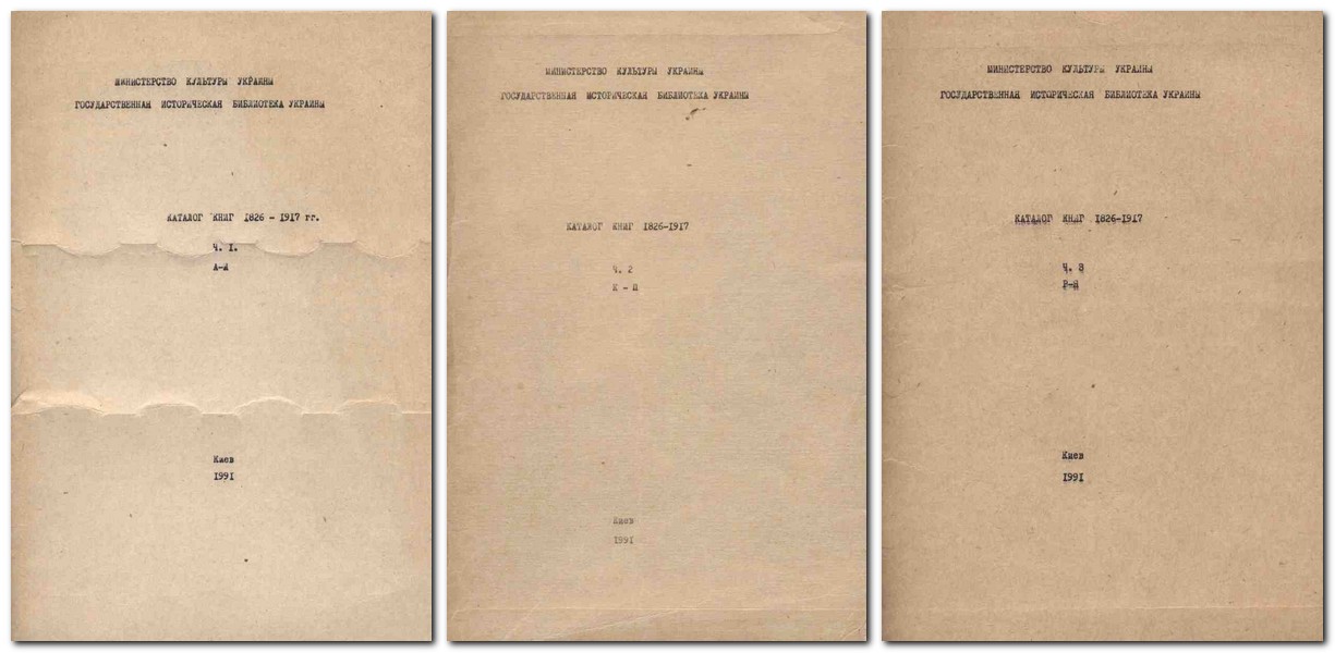 Каталог книг 1826-1917: у 3-х частинах. Київ. 1991