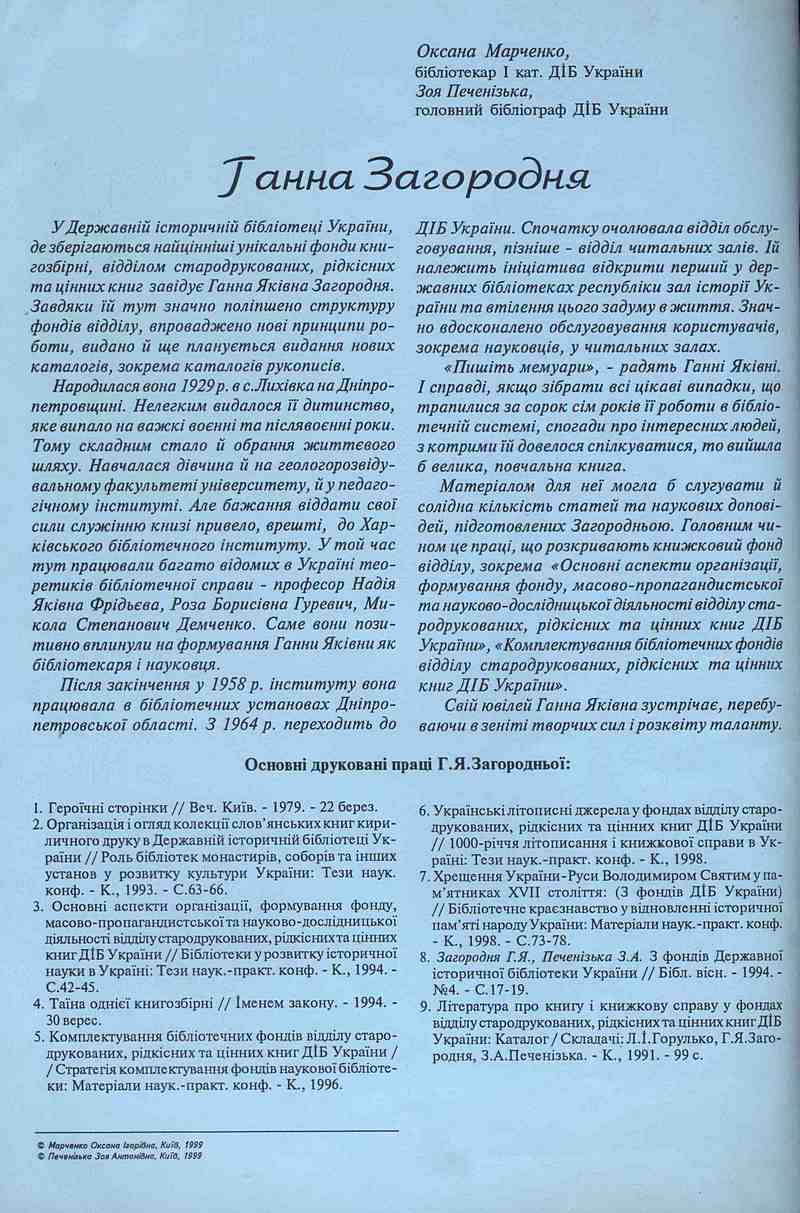 Та статтю про Ганну Яківну Загородню, яка багато років очолювала відділ читальних залів.