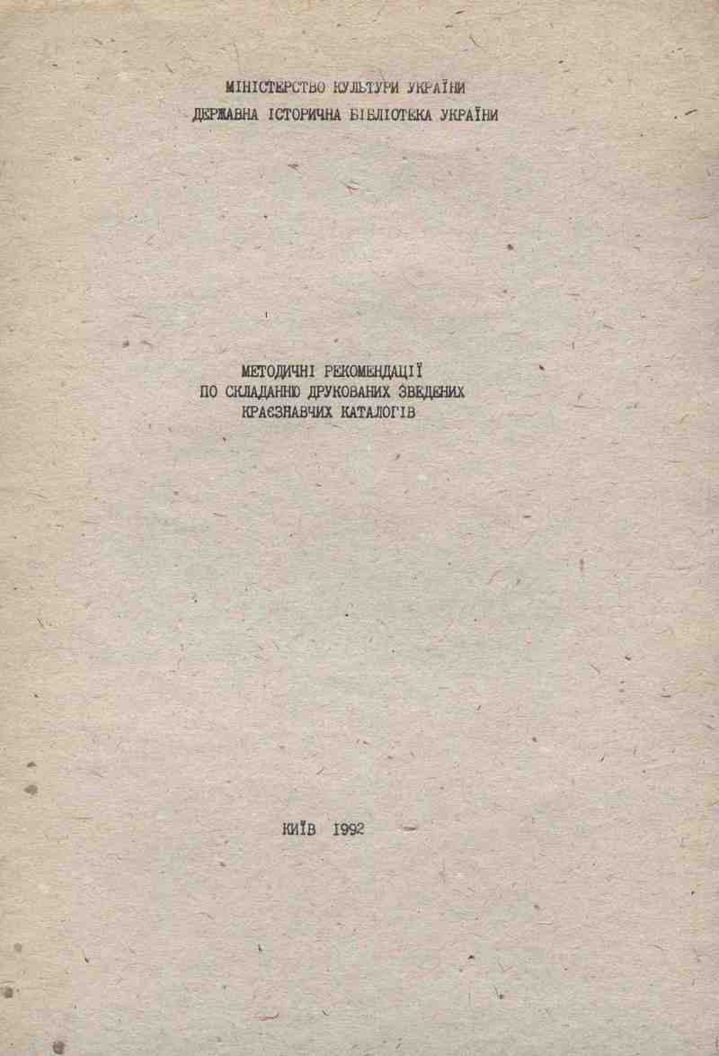 Методичні рекомендації по складанню друкованих зведених краєзнавчих каталогів / склад. В. П. Кисельова. Київ, 1992. 11 с.