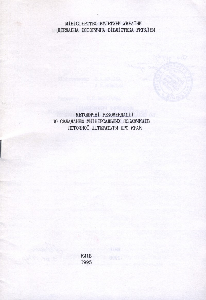 Методичні рекомендації по складанню універсальних покажчиків поточної літератури про край / підгот.: З. Х. Мусіна, А. М. Комська. Київ, 1995. 31 с.