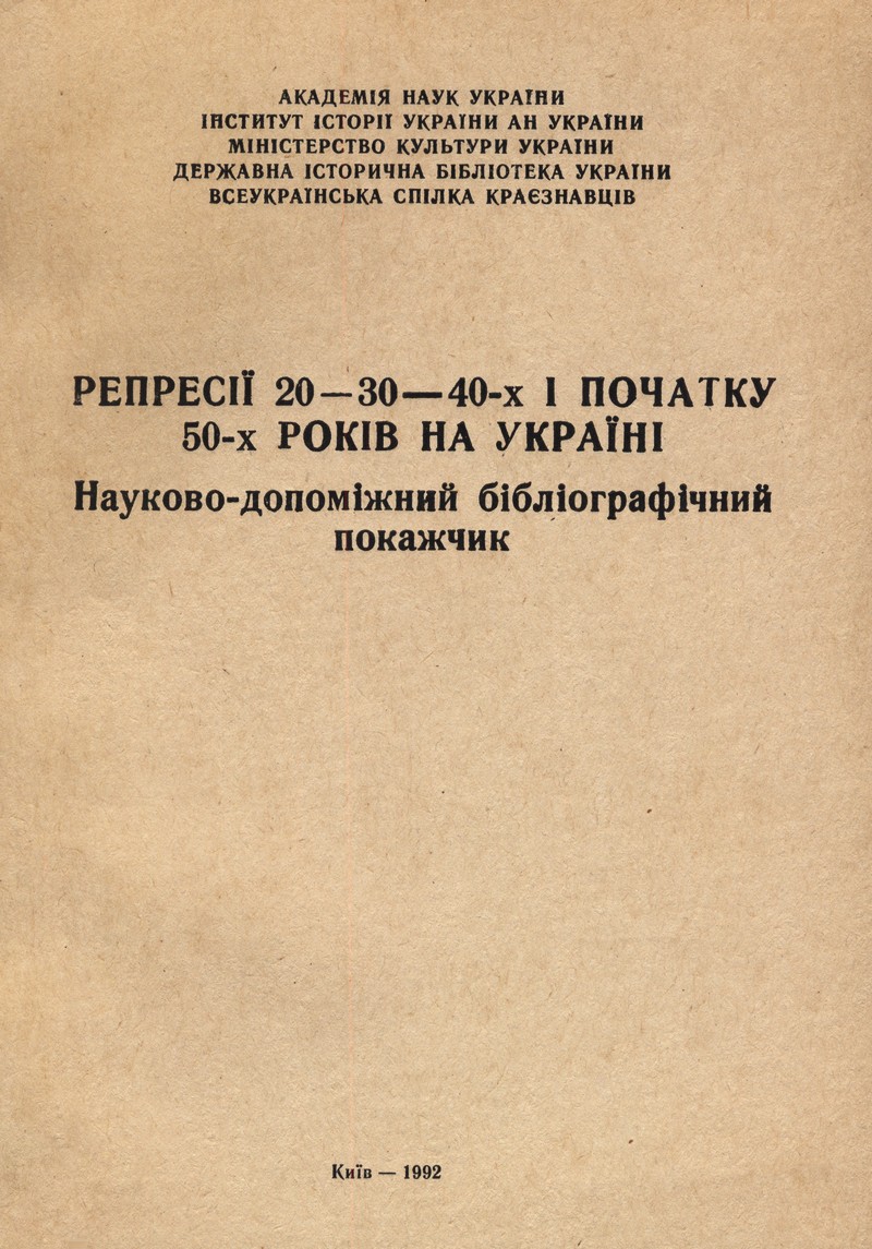 Репресії 20-30-40-х і початку 50-х років на Україні: наук.-допом. бібліогр. покажчик / упоряд. Л. Ю. Ступак та ін. Київ, 1992. 186 с.