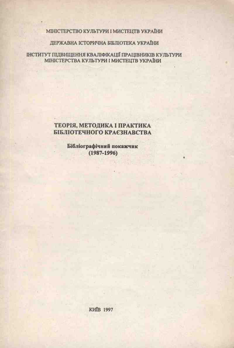 Теорія, методика і практика бібліотечного краєзнавства: бібліогр. покажчик (1987-1996) / підгот.: В. П. Кисельова, З. Х. Мусіна. Київ, 1997. 61 с.