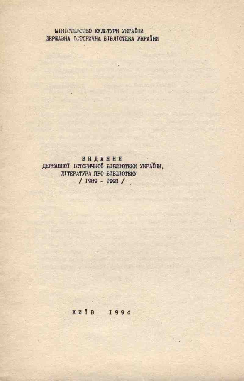 Бібліографічний покажчик «Видання Державної історичної бібліотеки України, література про Бібліотеку (1989-1993)» (К., 1994.19 с.),