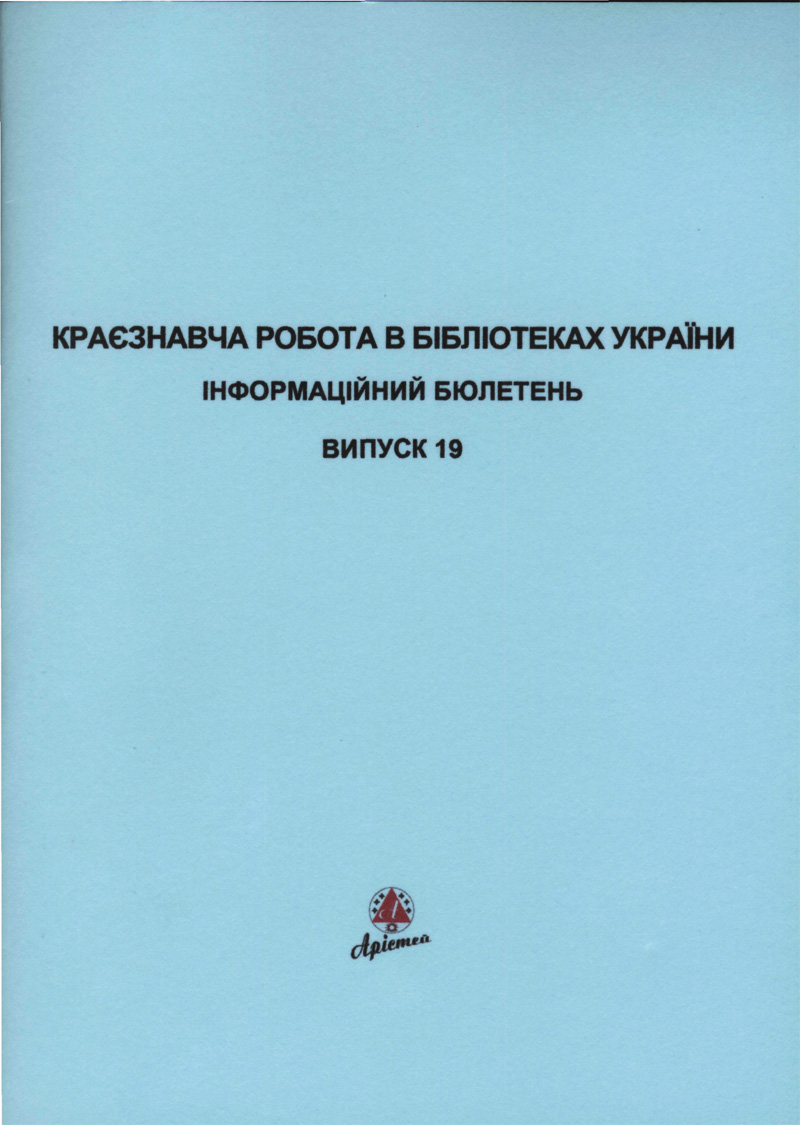 У 19-му випуску інформаційного бюлетеня «Краєзнавча робота в бібліотеках України» оприлюднено звіт проведеного у 2008 році дослідження «Сучасні тенденції в краєзнавчій діяльності бібліотек», а також, на численні прохання колег, рекомендації з систематизації документів в електронних зведених краєзнавчих каталогах та «Примірну схему Зведеного систематичного краєзнавчого кталога».
