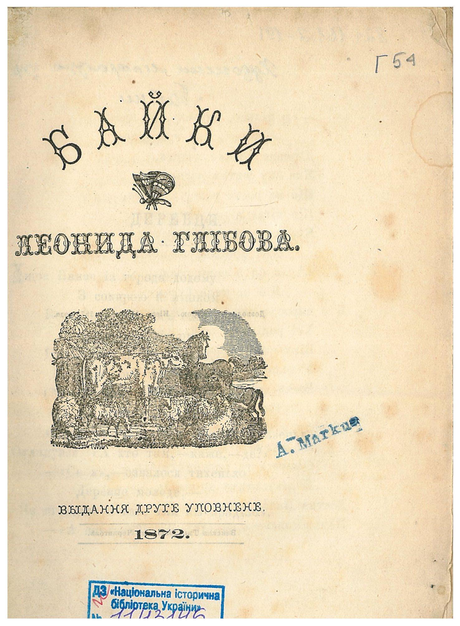1. Глібов Л. І. Байки Леоніда Глібова / Л. І. Глібов. – Вид. 2-е уповнене. - Чернігів : Земская Типография, 1872. – 124, IV с.