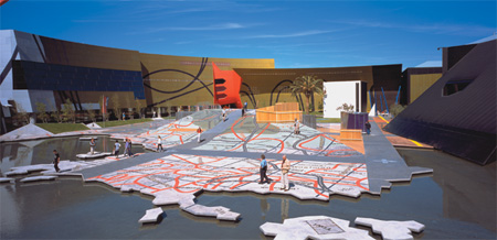 Зовнішній бік будівлі забарвлений у яскраву палітру помаранчевого, малинового, бронзового, золотого, чорного та срібного кольорів, що вирізняє музей від решти споруд у Канберрі, де будинки зведені з цегли переважно кремового кольору. Будівлю також вкрито панелями з анодованого алюмінію. На багатьох з них містяться англійські слова, написані шрифтом Брайля, наприклад: «друг», «вибачте», «вибачте нас за наш геноцид» (фразу звернено до австралійських аборигенів), «Бог знає», «час покаже», «любов — сліпа».