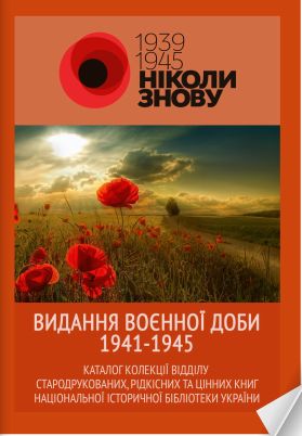 «Каталог видань воєнної доби 1941-1945 рр.», підготовлений до 70-ї річниці Перемоги над нацизмом у Другій світовій війні. Каталог містить понад 500 бібліографічних описів видань, що відкривають героїчну сторінку історії нашого народу, вони мають наукову цінність, є бібліографічною рідкістю, унікальні та змістовні. |