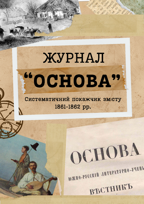 Журнал «Основа: южно-русскій литературно-ученый вѣстникъ». 1861-1862 : систематичний покажчик змісту / Міністерство культури та інформаційної політики України; Національна історична бібліотека України; ред.: І. Однопозов, О. Михайлова, С. Смирнова; уклад.: О. Покропивна, М. Цінська. Київ, 2023. 163 с. : іл. У бібліографічному покажчику розкривається зміст українського часопису «Основа: южно-русскій литературно-ученый вѣстникъ», що виходив у 1861-1862 рр. за редакцією В. Білозерського та активної участі П. Куліша і М. Костомарова. На сторінках журналу вперше порушувалися питання української національної ідентичності, самобутності українського народу, його мови, історії, освіти, культури й літератури. Видання розраховане на науковців, дослідників, спеціалістів різних галузей знань (істориків, етнографів, літературознавців, краєзнавців тощо), викладачів, студентів та усіх, хто цікавиться українською минувшиною.