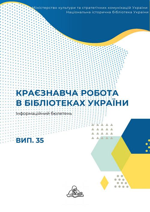 ліотеках України : інформаційний бюлетень. Вип. 35 / Міністерство культури та стратегічних комунікацій України, Національна історична бібліотека України ; упоряд. та ред. М. Цінська, наук. ред. Н. Волошінська ; відп. за вип. А. Скорохватова. - Київ, 2024. - 189 с.