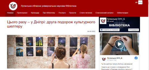 Луганська ОУНБ вимушена тікати від російської агресії. Двічі евакуйований заклад: з Луганська – у Старобільськ, зі Старобільська – у Черкаси. Разом з тим, фахівці книгозбірні не здаються. Окрім офлайнової роботи в центрі України, частина команди втілює проєкт мандрівної бібліотеки. У гібридному форматі працюють у Дніпрі, Києві та на Закарпатті.
