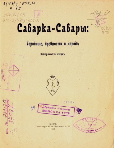 ІІІ. Болсуновский, Карл Васильевич. Саварка-Савары : городище, древности и народ : исторический очерк / К. В. Болсуновский. - Киев : Тип. И. Н. Никитина, 1912. - 22 с.