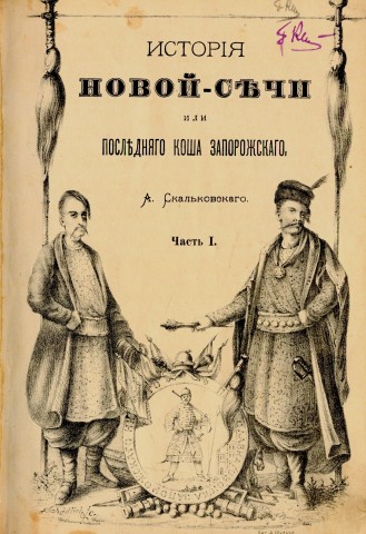 IV. Скальковский, Аполлон Александрович. История Новой-Сечи, или последнего Коша Запорожского : на основании подлинных документов Запорожского Сечевого Архива. Удостоенная почетного отзыва Императорской Академии наук. Ч. 1 / А. Скальковский . - 3-е изд. - Одесса : Типография А. Шульце, 1885. - 303 с. : план.